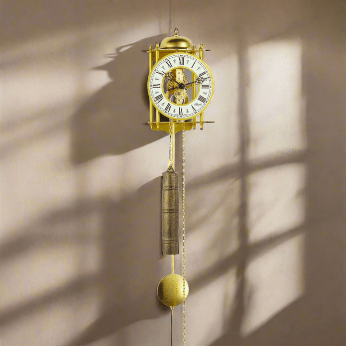 The brass passing bell strike movement is the show stopper with this wall clock. Let the aesthetics do all the talking.